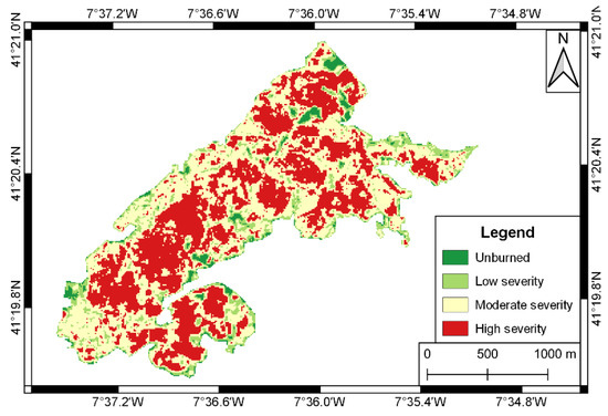 Fire severity classification of the study area.