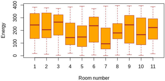 - The boxes show similar interquartile difference, which adds complexity to the development, as mentioned in Section 2.3, by having some similar measurements between rooms.