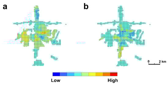 In the next step, grid data have been normalized in order to make city results comparable. In each city, therefore, the local maximum value of grid cells was assigned by 100 and all other values were calculated as relative to the maximum value on the 0–100 scale. This was done both for safe and unsafe grid categories.