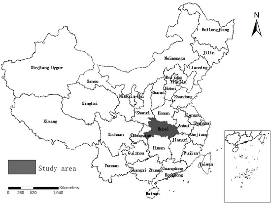 Hubei Province is located in central China, covering a total area of 185,900 square kilometers, with a total population of 58.52 million in 2015 [46]. The latitude ranges from 29°01′53′′ to 33°6′47′′, and the longitude ranges from 108°21′42′′ to 116°07′50′′. Hubei is surrounded by Anhui Province, Shaanxi Province, Henan Province, Jiangxi Province and Hunan Province and contains 17 prefecture cities, namely, Enshi Tujia and Miao Autonomous Prefecture, Yichang, Shennongjia Forest Region, Shiyan, Xiangyang, Suizhou, Jingmen, Jingzhou, Qianjiang, Tianmen, Xiaogan, Xiantao, Wuhan, Ezhou, Huanggang, Huangshi, Xianning, as shown in Figure 1.