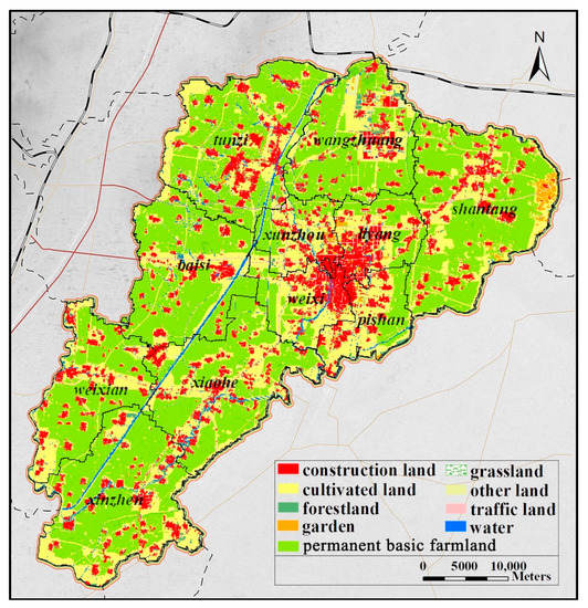 - Yang, X.; Jin, X.; Jia, P.; Ren, J. Designation method and demonstration of permanent basic farmland in county level on view of multi-planning integration. Trans. Chin. Soc. Agric. Eng. 2019, 35, 250–259. (In Chinese) [Google Scholar]