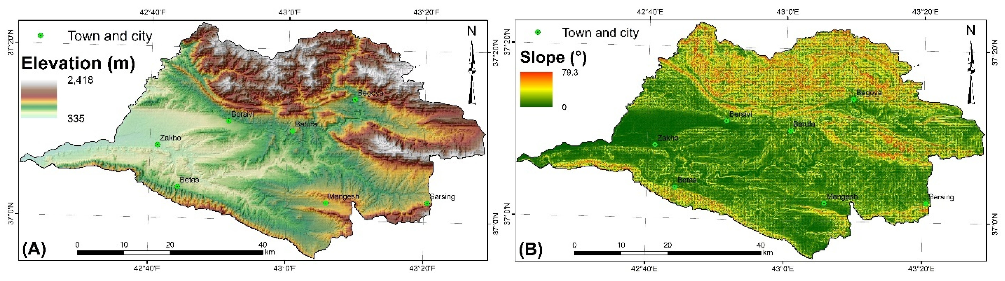 | Aqra–Bekhme | Most suitable | 9 | 9 | 3.951 | 2.163 | 8. Slope (°) | |||||