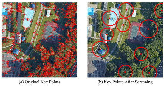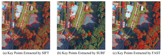Recently, a series of key point extraction algorithms have been proposed, including Harris [39], Scale-Invariant Feature Transform (SIFT) [40], Speeded Up Robust Features (SURF) [41], Features from Accelerated Segment Test (FAST) [42], etc. Figure 2 shows the results of key points detection results of different methods.