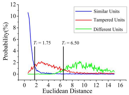 However, the values of TPRT and TPRD are not very ideal. As can be seen from Table 4, some Tamper Units are considered Different Units, and some Different Units are considered Tamper Units. The reason is that the size of tampered area cannot affect the intensity of tampering linearly. For example, embedding a black tamper area in a white image has a great impact on the Zernike moments, while replacing one lawn with another lawn has a relatively small impact on the Zernike moments. In principle, the distinguishing ability between Tamper Units and Different Units only affects the result of tamper localization. Since the tamper localization is implemented in grid unit scale, the results will not be greatly affected.