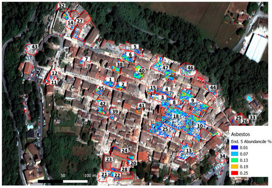 It does not mean that 50% of rubbles contains asbestos in concentrations that could be harmful to human health. However, the present research demonstrate that it is possible to identify the potential presence of this hazardous substance and support management of waste and rubbles to be removed. Sustainable land reclamation is one of the main goals of ENEA as it has a great socioeconomic importance with a high impact on economic development []. Results of the present study are of extreme practical and logistical relevance, and it could be replicated to improve the effectiveness of management in post-earthquake emergencies around the world.