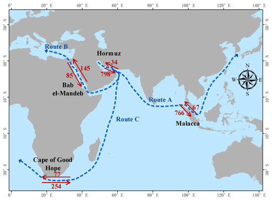 | Year | Strait of Malacca | Strait of Hormuz | Strait of Bab el-Mandeb | Cape of Good Hope |