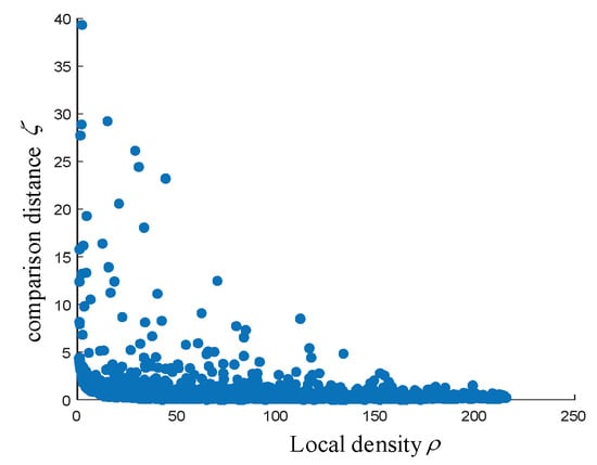 Clustering by fast search and finding density peaks are representative of a density clustering algorithm. The basic idea of the DPC algorithm is based on two assumptions: (1) the cluster center is surrounded by some points with a lower density; and (2) these centers have a relatively larger distance from the points of higher density [27].