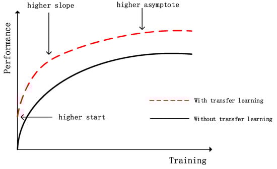 Transfer learning has lots of merits. As shown in Figure 7, transfer learning has a higher start, higher slope, and higher asymptote. Therefore, for obtaining the best localization model in this paper, a Resnet-based coarse localizer model and transfer learning-based fine localizer model were used to maximize the localization accuracy. These two localizer models need to be trained separately. Specifically, Resnet is first used to train with the fingerprint image dataset. After completing the training process, we reserved the trained Resnet model and added MLP after Resnet for transfer learning. The MLP-based transfer learning model leveraged prior information from the trained Resnet to maximize localization accuracy.