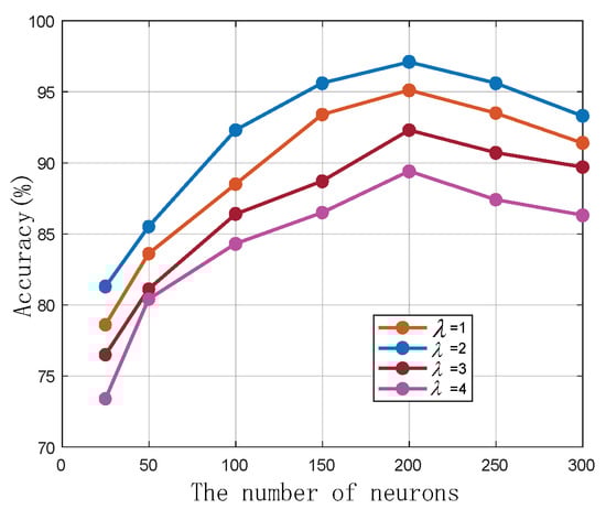 Figure 12. Indoor localization accuracy with respect to the number of neurons and λ .