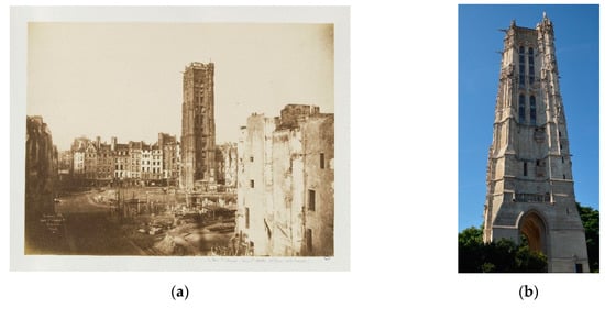 Figure 3) that is located in Rue Rivoli in Paris’s 4th arrondissement. This bell tower is in flamboyant gothic style and it has been inscribed in the UNESCO Heritage List since 1998 for its historical importance. The building, in fact, is the only evidence of the lost Saint-Jacques-de-la-Boucherie church, a Carolingian chapel destroyed in 1797 after civil unrest. The tower was saved from destruction because of its high architectonic value and after restoration, it was moved from its location and elevated on a decorative stone podium [