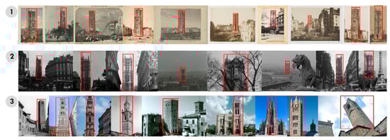 The quality of primary data used in the implementation of the NN plays a crucial role in the achievement of good results. This strongly influences the training and a significant level of data entropy is necessary for the machine to learn the features of the object. It was easier to use the tower for this because, in addition to historical images retrieved for both case studies, it was also possible to collect hundreds of contemporary images with different backgrounds, lighting conditions and points of view. The methods used for the collection were the following: (1) web crawling; (2) ad hoc photographic survey in the new location of the tower; (3) historical archives consultation in Paris.
