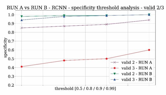 Specificity threshold analysis for RUN A and RUN B with valid 2 and 3.