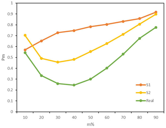The preservation ratios (Pm) calculated for one read-world dataset (Real) and two synthetic datasets (S1 and S2).
