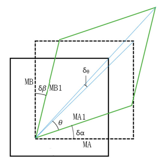 The variation rate of direction is the deformation rate of the fluid in a neighborhood around a given point, which equals the average value of the rate of rotation of two fluid line elements orthogonal to this point. If the angle at a point in the flow fields is the same as that of its neighbours, or if the angle of change is the same, the variation rate of direction is the same. For a given point P (x, y), the variation rate of direction is as shown in Figure 3.