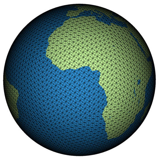Figure 17 demonstrates the output of our system and shows the impact of low angular distortion on the resulting grid geometry. The resolution of this grid is five, and it partitions the Earth into 30,720 triangles.