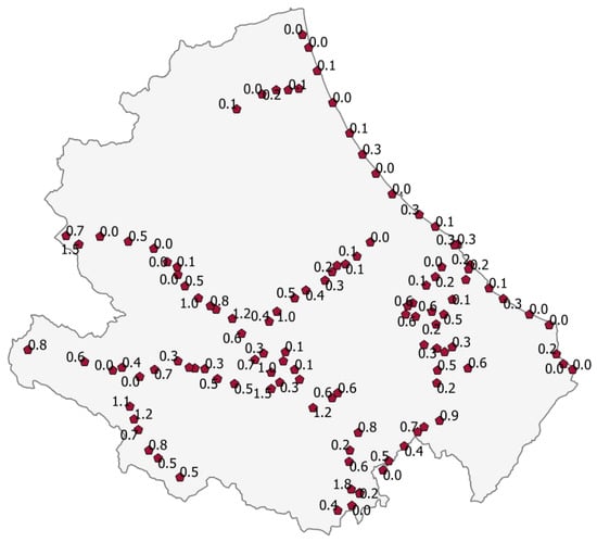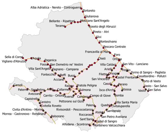 Set . Figure 8 shows the map about the 114 railway stations in the Abruzzo region.