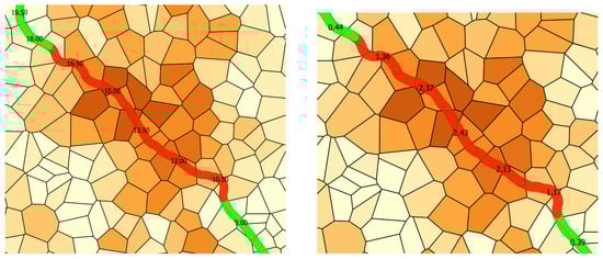 Equation (14) computes the value of the exposure of the generic segment  of the route . In the equation,  denotes the value of the exposure of point .