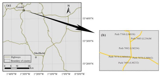 Study area: (a) highways between Leeds and Sheffield; (b) a part of paths.