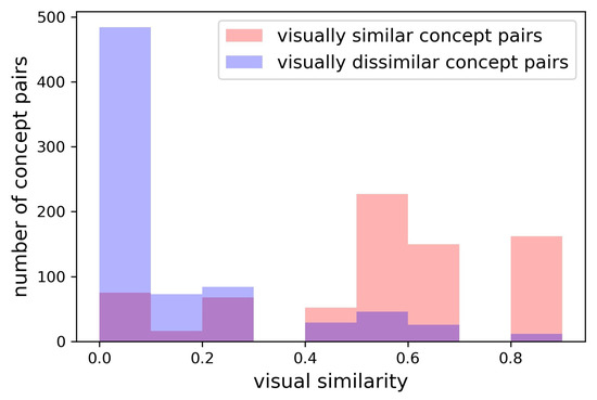 Distributions of visual similarities for each type of concept pairs