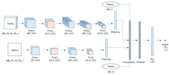 Structure of DCCNN. Bt: batch size, Ch: channel count, Input: input layer, Conv: convolution layer, Pool: pooling layer, Flatten: flatten layer, and FC: fully connected layer.
