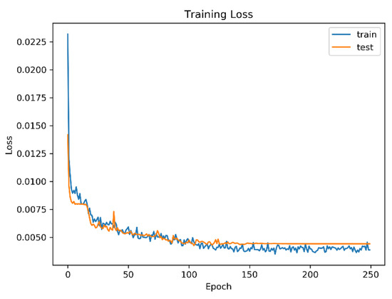 Figure 12 shows the loss function during model training. When the epoch value is over 150, the losses of the training and test sets tend to be stable and reach the minimum value.