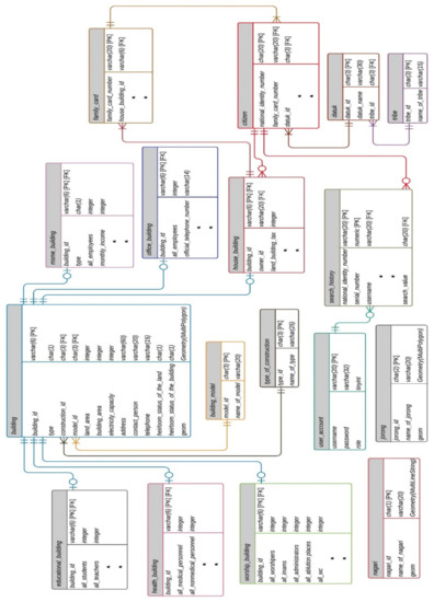 The database created consists of six main tables without any special relations. The tables were formed based on the use of buildings (namely, the MSME_building, office_building, worship_building, educational_building, health_building, and house_building tables). The relation of the building table with the six main tables is One to (Zero or One), where the primary key of the building table is the primary key and the foreign key in every six main tables. The building_model table is useful for supporting tourism of the Koto Gadang village. Meanwhile, in terms of spatial relations, all six main tables had coincidental relations. In addition to the six main tables, to link the house with their inhabitants, two other tables were developed, the family_card and citizen tables. The developed relationships are as follows: (1) the relation between the house table and the family_card table is One to (One or Many), where house: family_card_id becomes the foreign key in the family_card table, and (2) the relation of the family_card table with the citizen table is One to (One or Many), where family_card: family_card_number becomes a foreign key in the citizen table. Furthermore, so this GB can meet population needs according to Minangkabau customs, two other tables were created: the tribe and datuk tables. The tribe table relates to the datuk table in the form of One to (One or Many). The datuk table is related to the citizen table in the form of One to (One or Many).