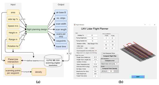(a) Flowchart of the flight planning tool. (b) Graphical user interface of the designed flight planning tool.