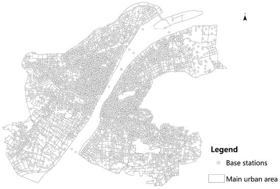 Spatial distribution of base stations in the main urban area of Wuhan.