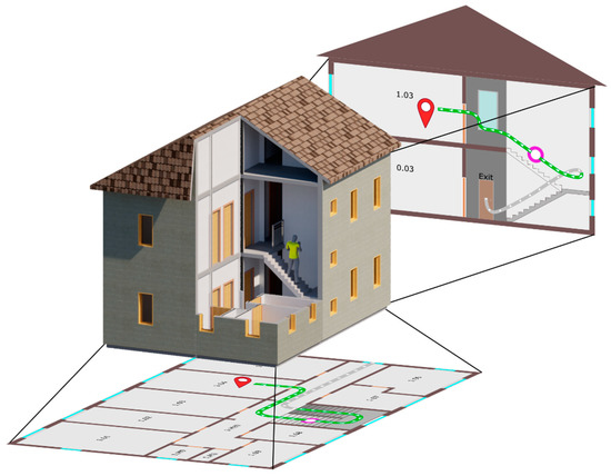 Indoor navigation is one of the new applications. Models that would prove useful in determining an indoor route to a destination have already received much attention in the literature [15,16,17]. There are several standards of describing the interior topography of buildings, e.g., Industry Foundation Classes [IFC] derived from the BIM methodology [18], or a CityGML adopted for this purpose [19]. There are known ways of creating these models based on existing architectural and construction documentation made with CAD technology [20,21], or BIM methodology [22]. Research has placed much less emphasis on another aspect of the operation of navigation applications, i.e., the correct visualisation of a building’s interior. Cartographers have only recently become more interested in modelling the interior of buildings [23,24] and the “indoor cartography” research area is becoming distinct [1,9,25].