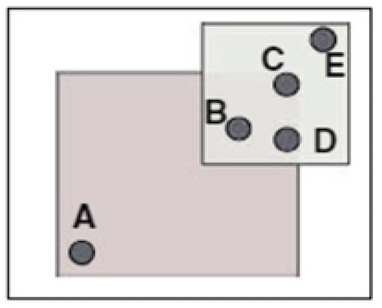 A query sampling attack [15,43,44] is where the attacker employs the unfair location distribution of the LBS users for his own malicious purpose. This type of inference attack targets isolated users in a sparse region, as illustrated in Figure 8.