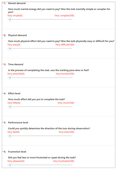 - Jin, T.; Xue, C.; Wang, H.; Niu, Y. Research on evaluating methods of situation awareness of digital graphical interfaces. Chin. J. Eng. Des. 2014, 21, 87–91. [Google Scholar]