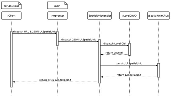 The UML sequence diagram in Figure 2 shows the roles and communications between these layers in the case of creating an LASpatialUnit object.