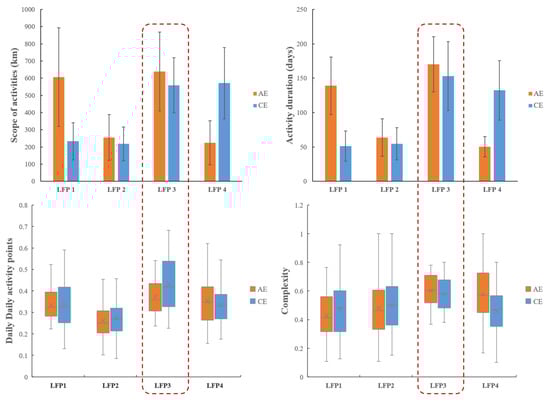Table 1 lists the LFPs of the trajectory structures of AE and CE, respectively. Each LFP is represented with its largest and most frequent sequence S, the length of the active cycle LT for the sequence S, the number of trajectories, as well as the percentage of trajectories. The percentage is calculated as the proportion of the trajectories in the sequence S in relation to the total number of trajectories within that specific cluster.