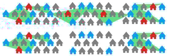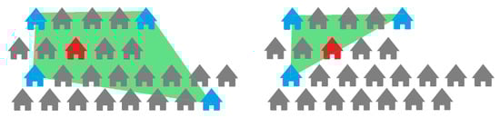 None of the above-mentioned studies used appraisal information in deciding the boundaries of neighborhoods. Given that appraisals are conducted by professionals who are experts in their regions, we find it necessary to use their knowledge in a neighborhood estimation problem. A study by Coulton et al. asked residents to draw maps of their neighborhoods and compared the maps with Census blocks []. They found that units created by the residents covered different space and produced different social indicator values than the ones produced by Census-defined units. Sun and Mason compared different regionalization criteria and found that segmentations proposed by experts and realtors were significantly different from ZIP codes and Census tracts []. Moreover, Chappell et al. studied neighborhoods defined by residents’ sense of belonging with city-defined boundaries and suggested that administrative boundaries should reflect the subjective experience of living in a region []. This is an indicator of how studies on neighborhood effects can be biased when no input from residents or area experts is taken into account for the defined neighborhoods. Another area of contention is the large number of estimators required to solve this problem. An appraiser decides which properties are similar by considering the comparable physical characteristics they may share, so the knowledge itself of which properties were termed comparable, should be enough to be able to define neighborhood boundaries within which properties share similar characteristics.