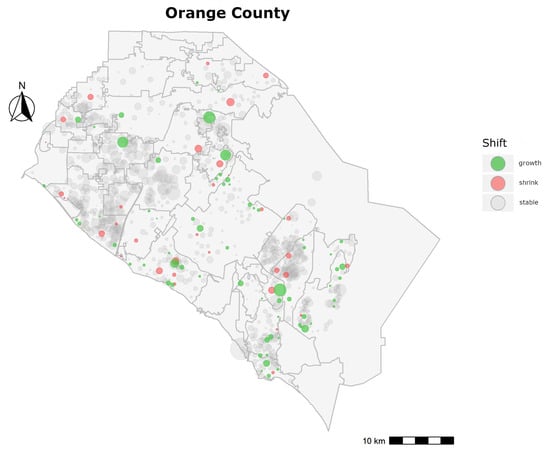 Growing and shrinking neighborhoods in Orange County (2014–2018).