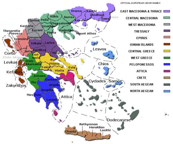 Greece extends across 131,957 km2 in Southeastern Europe, with 13 administrative regions, nearly 50 prefectures (Figure 1) and more than 1000 municipalities.