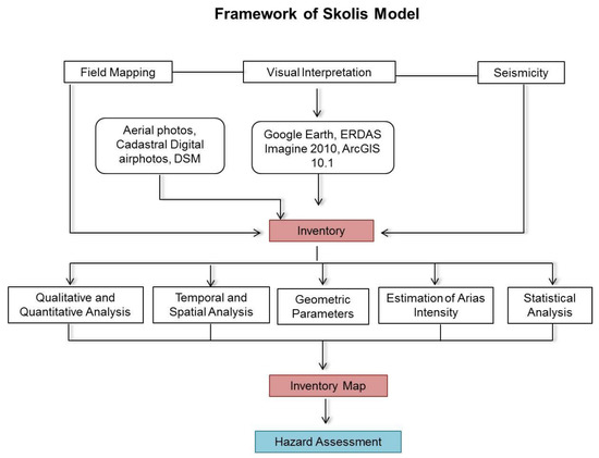 A common approach for studying slope failure by an earthquake or cumulative earthquakes is the inventory of the induced landslides. Landslide inventory, according to Cruden [1] and Fell et al. [2] is the record of the location, classification, volume, activity, and date of occurrence, where known, of individual landslides in an area as inventory maps. Although inventory maps have received particular attention for landslide susceptibility, landslide maps cover less than 1% of the slopes in the landmasses, and systematic information on the type, abundance, and distribution of landslides is lacking. [3]. There are many criteria for long-term inventory maps depending on the purpose or the extent or the available remote sensing data (i.e., aerial photographs or satellite images) that contribute to its temporal completeness [4,5]. Furthermore, in the case of earthquake-induced landslides, the completeness of the records of local seismicity are also very important. Thus, it is necessary to have a consecutive time series of remote sensing and earthquake data to determine the reactivation and appearance of old and new landslides, respectively. According to Xu [6], landslide inventories based on remote sensing data can avoid missing a large number of small scale landslides and can obtain detailed and comprehensive earthquake-triggered landslide inventories.