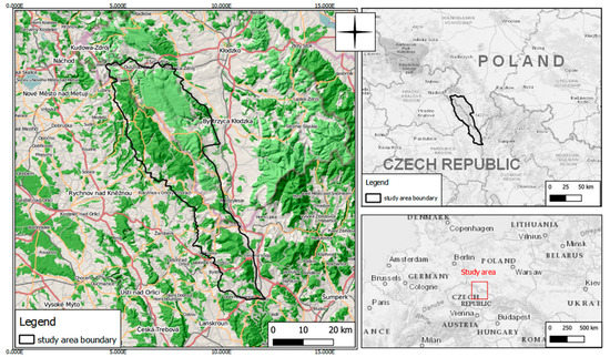 For the case study, we chose the border tourist region of the Orlickie Mountains (Orlické hory; Góry Orlickie) and Bystrzyckie Mountains (Góry Bystrzyckie); the physiographic regions that do not overlap with administrative boundaries. This area is located on the Polish–Czech border (Figure 1) in the Sudetes (Sudety Mountains), which is often analyzed in the context of land management or tourism development in its border areas [5,36,61,62,63]. The Sudetes are post-industrial and post-mining region where the role of the service sector, including tourism, is currently growing [25,64,65]. After World War II, these areas were subject to adverse socio-economic phenomena associated with their peripheral location and restrictions related to the political and military protection of the state border between Czechoslovakia and Poland. As a result, depopulation was observed in the Polish borderland, leading to the disappearance of former villages and a decrease in the quality of infrastructure [19,25,66], alongside re-naturalization and an increase in the area of forests [67,68]. The Orlickie and Bystrzyckie Mountains have rarely been the subject of separate studies on the Polish–Czech border, except for the articles of Kołodziejczyk, which analyze the development of marked tourist trail networks [6,60].