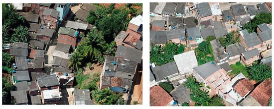 - Gomes, J.; Pedrassoli, J. Levantamento de Características de Moradias Em Favelas com o Uso de Drone: Um Experimento na Comunidade do Alto das Pombas, Salvador/Ba. In Proceedings of the III Seminário Nacional sobre Urbanização de Favelas—UrbFavelas, Salvador, Brazil, 21–23 November 2018. [Google Scholar]