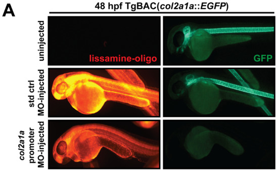 - Dale, R.M.; Topczewski, J. Identification of an evolutionarily conserved regulatory element of the zebrafish col2a1a gene. Dev. Biol. 2011, 357, 518–531. [Google Scholar] [CrossRef] [PubMed]