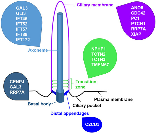 - Czarnecki, P.G.; Shah, J.V. The ciliary transition zone: From morphology and molecules to medicine. Trends in Cell Biol. 2012, 22, 201–210. [Google Scholar] [CrossRef] [PubMed]