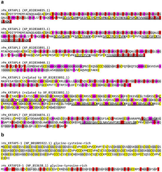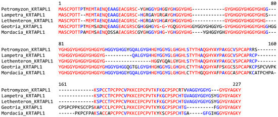 3.3. KRTAP-like Proteins of the Lamprey Are Rich in Glycine, Tyrosine, Cysteine, and Histidine