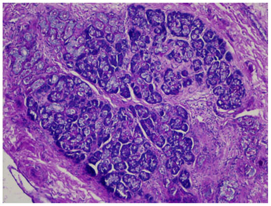 - Chatelain, D.; Chailley-Heu, B.; Terris, B.; Molas, G.; Le Caë, A.; Vilgrain, V.; Belghiti, J.; Degott, C.; Flejou, J.-F. The ciliated hepatic foregut cyst, an unusual bronchiolar foregut malformation: A histological, histochemical, and immunohistochemical study of 7 cases. Hum. Pathol. 2000, 31, 241–246. [Google Scholar] [CrossRef]