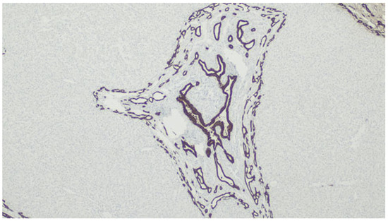 - Terada, T. Ductal plate in hepatoblasts in human fetal livers: I. ductal plate-like structures with cytokeratins 7 and 19 are occasionally seen within human fetal hepatoblasts. Int. J. Clin. Exp. Pathol. 2013, 6, 889. [Google Scholar] [PubMed]
