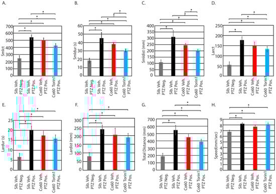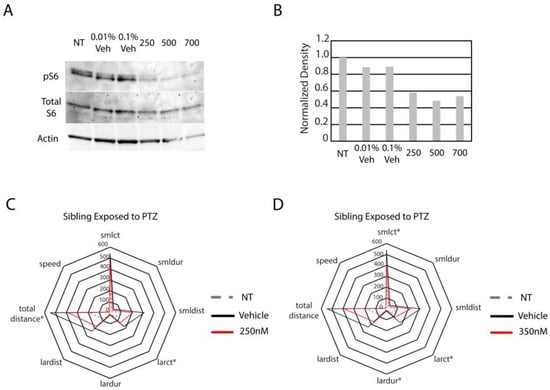 3.5. Inhibition of mTor at 250 nM Reduces Small/Short Behavioral Parameters in Mutant Animals Exposed to Seizure-Inducing Doses of PTZ