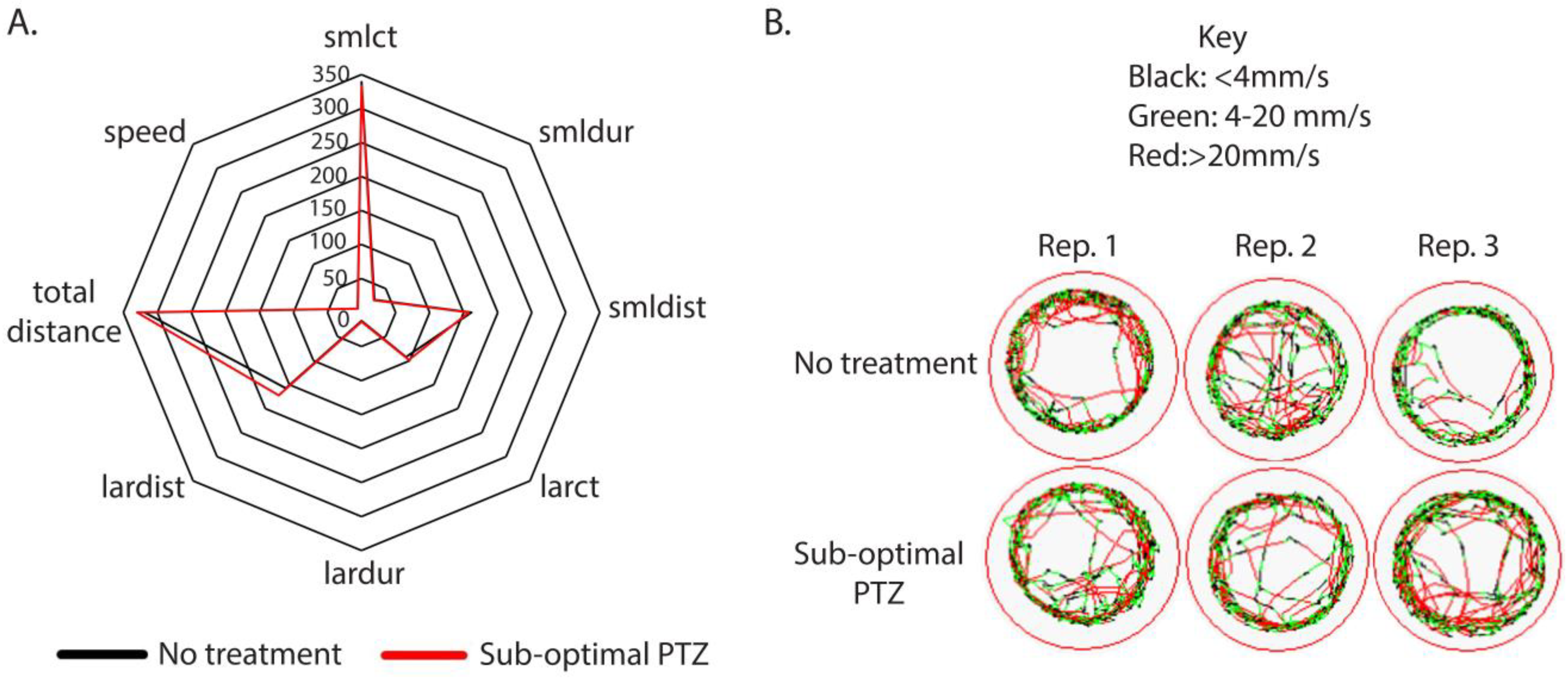 - Milder, P.C.; Zybura, A.S.; Cummins, T.R.; Marrs, J.A. Neural Activity Correlates with Behavior Effects of Anti-Seizure Drugs Efficacy Using the Zebrafish Pentylenetetrazol Seizure Model. Front. Pharmacol. 2022, 13, 836573. [Google Scholar] [CrossRef]