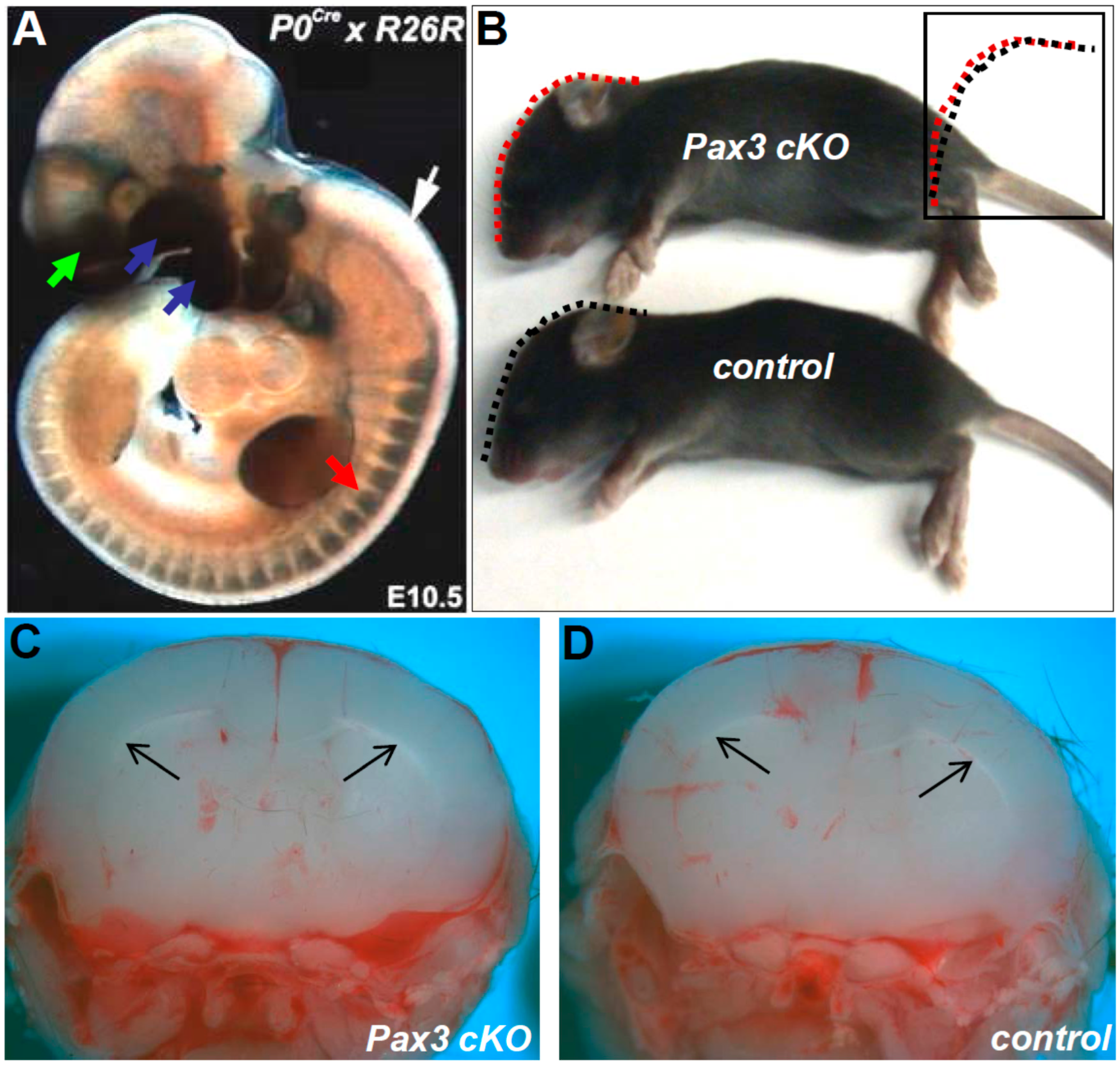 - Koushik, S.V.; Chen, H.; Wang, J.; Conway, S.J. Generation of a conditional loxP allele of the Pax3 transcription factor that enables selective deletion of the homeodomain. Genesis 2002, 32, 114–117. [Google Scholar] [CrossRef] [PubMed]