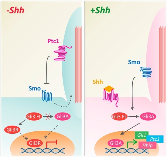 - Bai, C.B.; Auerbach, W.; Lee, J.S.; Stephen, D.; Joyner, A.L. Gli2, but not Gli1, is required for initial Shh signaling and ectopic activation of the Shh pathway. Development 2002, 129, 4753–4761. [Google Scholar] [PubMed]