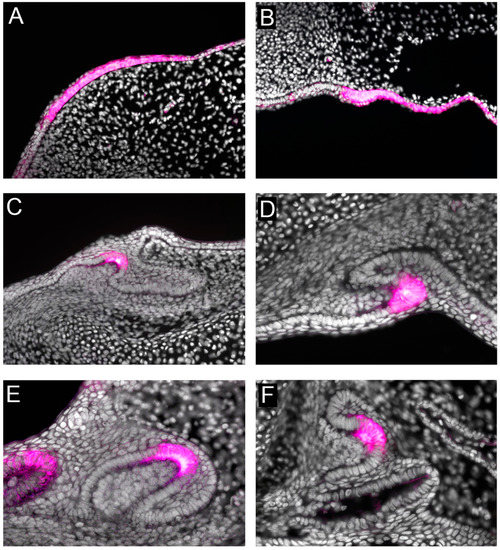 - Li, J.; Chatzeli, L.; Panousopoulou, E.; Tucker, A.S.; Green, J.B. Epithelial stratification and placode invagination are separable functions in early morphogenesis of the molar tooth. Development 2016, 143, 670–681. [Google Scholar] [CrossRef] [PubMed]