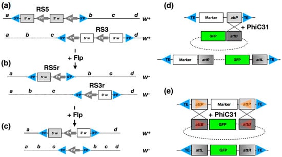 - Bateman, J.R.; Lee, A.M.; Wu, C.T. Site-specific transformation of Drosophila via phic31 integrase-mediated cassette exchange. Genetics 2006, 173, 769–777. [Google Scholar] [CrossRef] [PubMed]